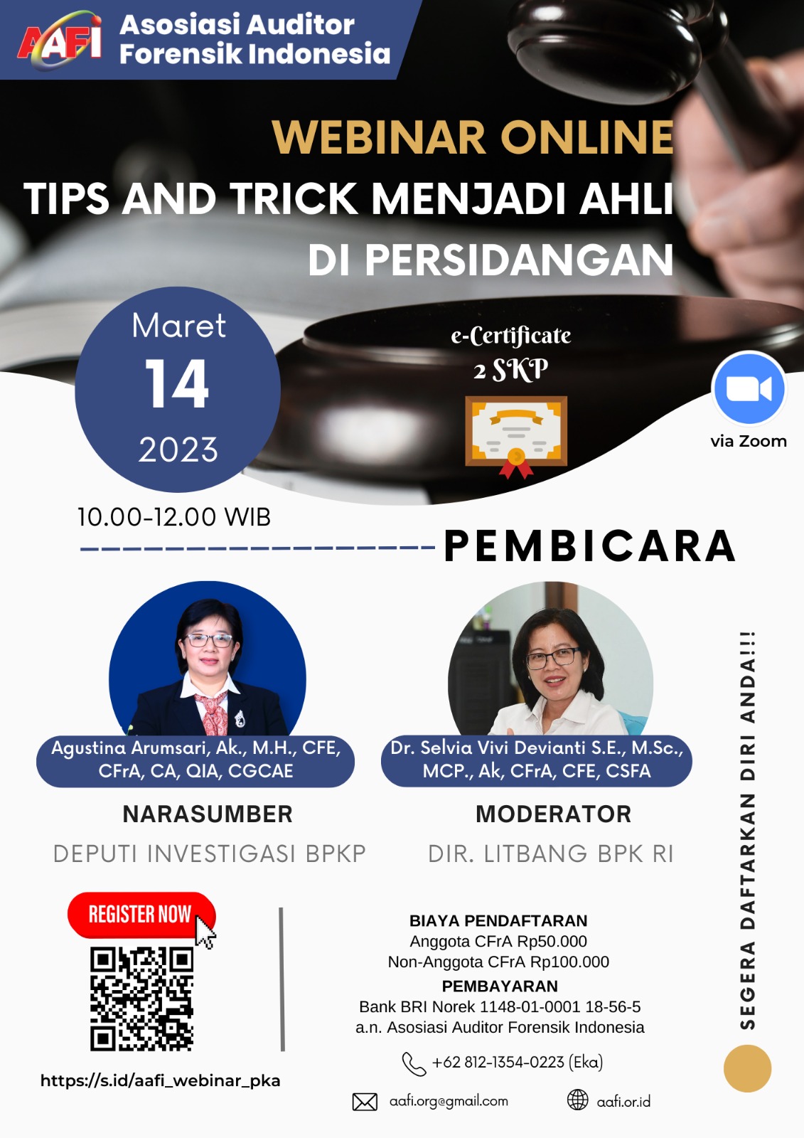 Asosiasi Forensik Auditor Indonesia (AAFI YOGOSEM) mengundang Bapak/Ibu dalam Webinar Online dengan Tema "TIPS AND TRICKS MENJADI AHLI DI PERSIDANGAN"