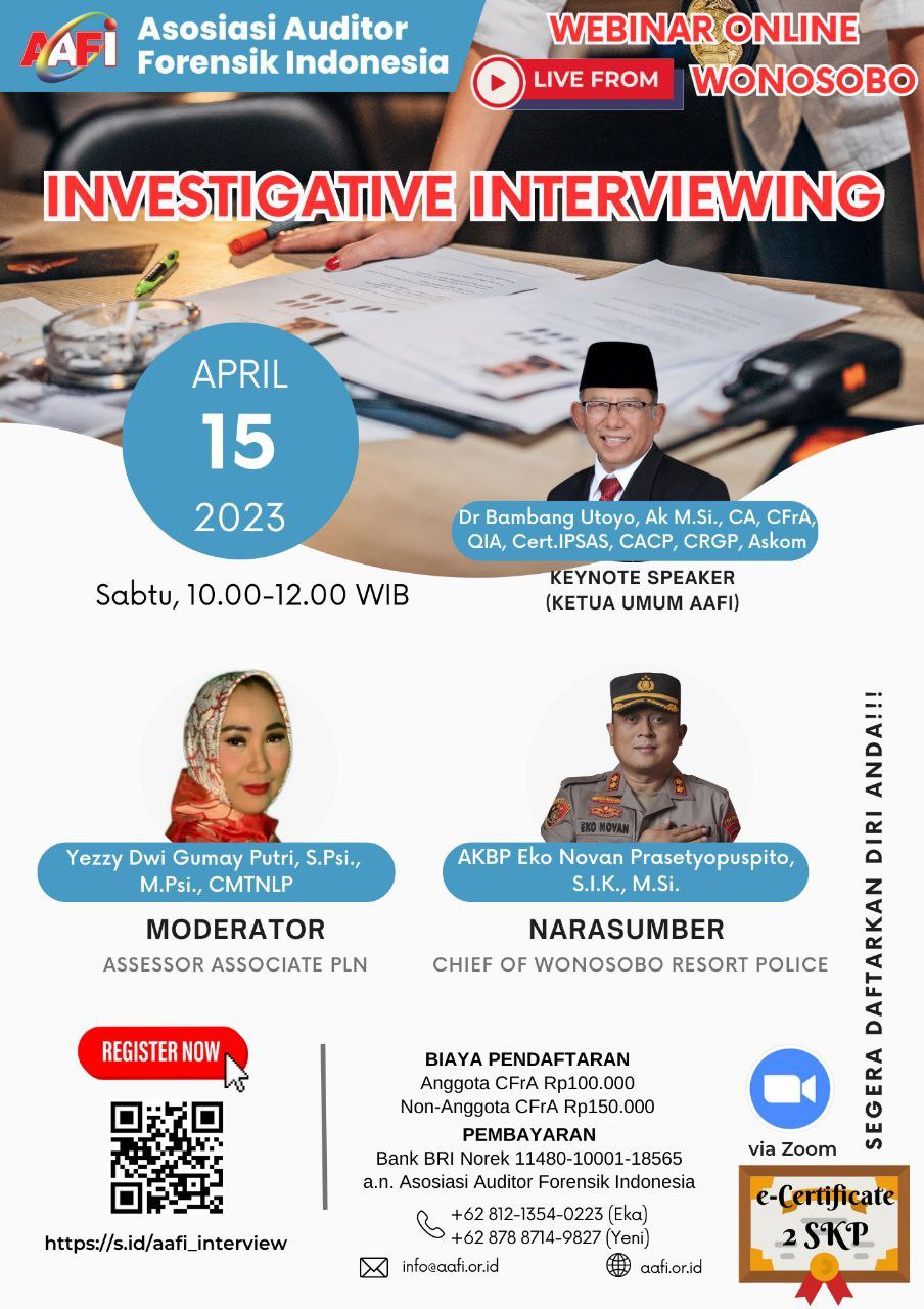 Asosiasi Forensik Auditor Indonesia (AAFI YOGOSEM) mengundang Bapak/Ibu dalam Webinar Online dengan Tema INVESTIGATIVE INTERVIEWING